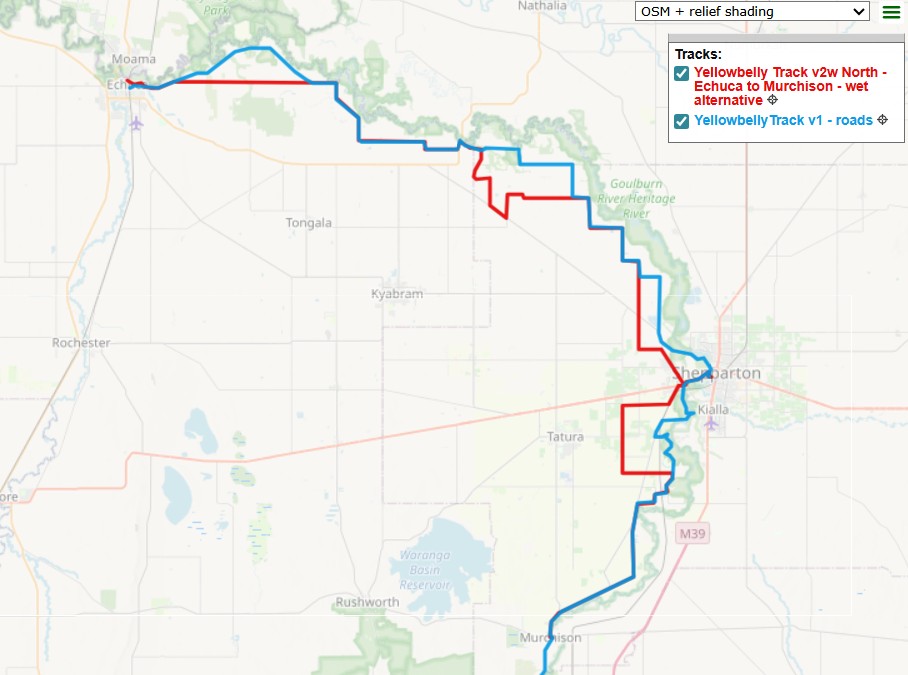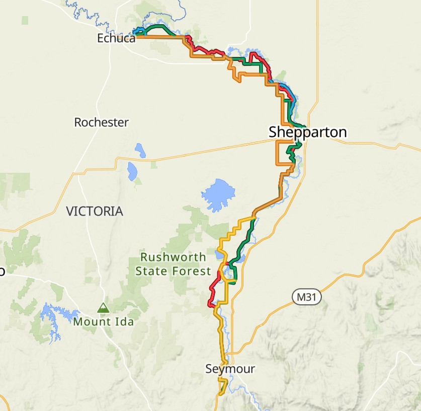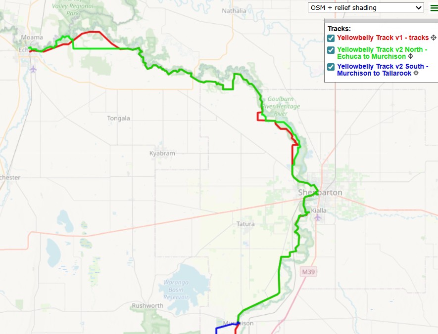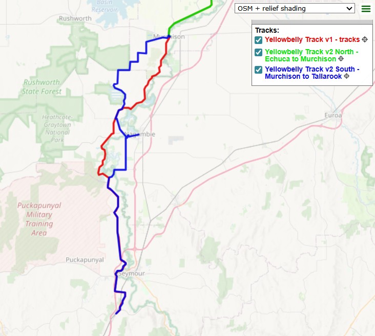 - Yellowbelly Track v2 avoids Kirwans Bridge at Nagambie which is still closed.