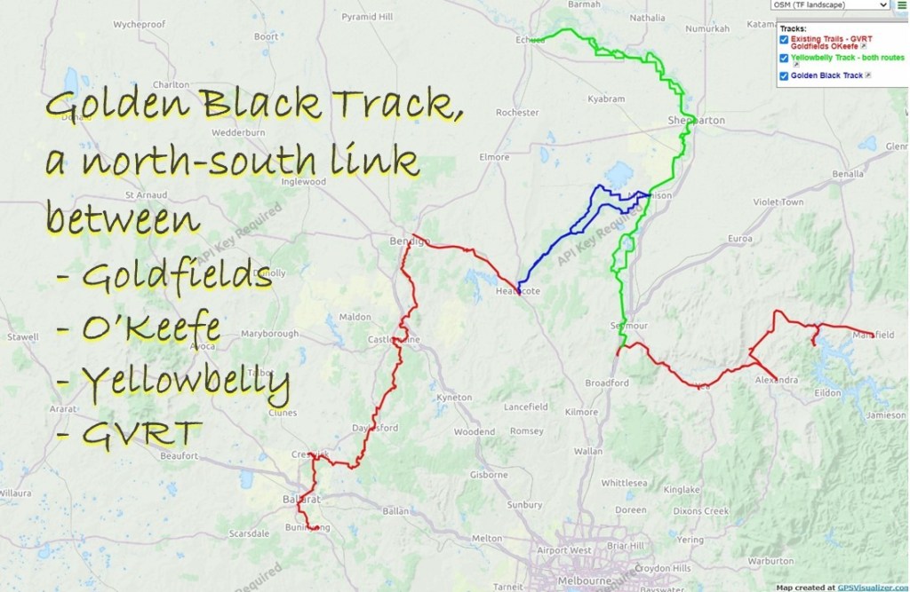 The Golden Black Track is a 152 km bike riding loop between Murchison, Heathcote and Rushworth in northern Victoria.