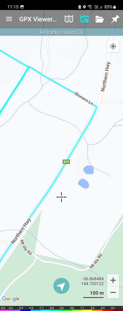 The screenshot to right shows all three gpx files loaded onto the GPX Viewer app on my mobile phone.