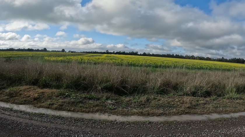 The road quality was great, despite them being damp, and the small puddles were relatively easy to avoid. We shared our experience with cows and horses staring at us from paddocks, and multitudes of galahs and cockatoos screeching as they flitted from tree to tree in front of us.