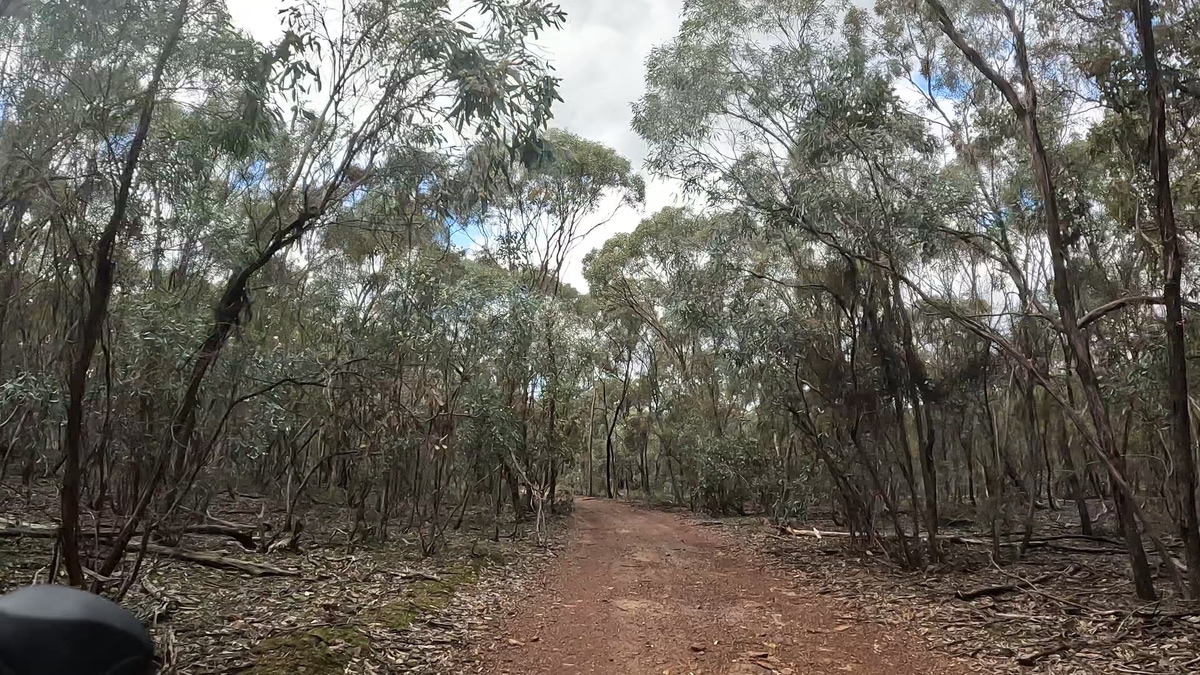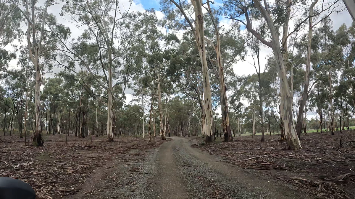 Photos taken, we headed back onto the road, quickly turning back onto the gravel back roads toward Rushworth State Forest. After passing more farms, and beautiful fields of yellow flowers, we turned back into the beautiful ironbark forest, with rolling hills and deep silence whenever we stopped.