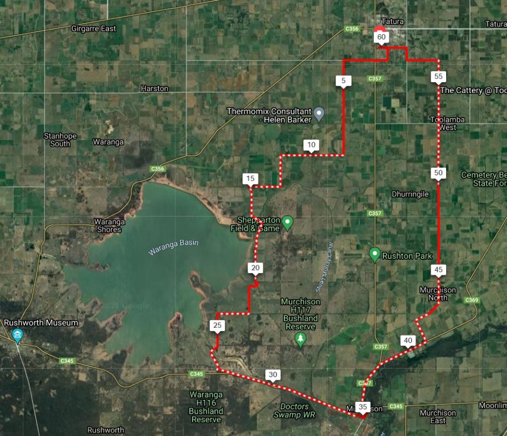 - Highlights: Waranga basin, Good bakeries, Longleat Winery, Country roads, Murchison to Waranga Rail Trail.