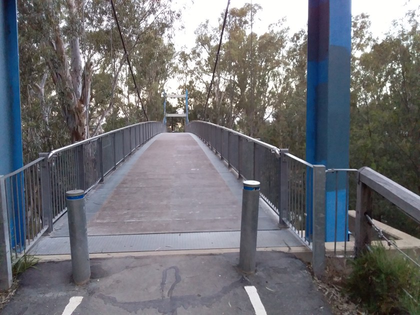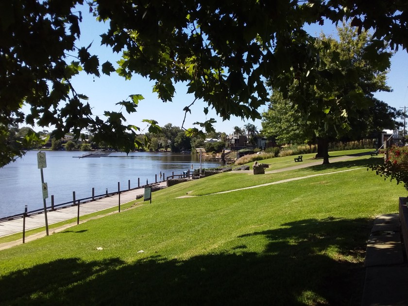 Basic accommodation is available at Victoria Lake Holiday Park. It is easy to get to – a few hundred metres south of footbridge, along a bike path. This is a council owned Park in a scenic location close to the river and lake. Facilities are a bit old. There is a train line nearby, but I suspect the local river corellas might be more noisy. Consider including sleeping earplugs in your kit.