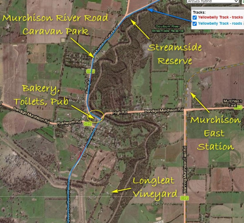 While Nagambie has a full range of accommodation options, for campers the best option is probably Nagambie Lakes Leisure Park (yes, owned by Gerry Ryan). As shown on the map below this Park is to the south east of Nagambie township along the Yellowbelly Track route. It is a scenic park with very good facilities. Pre-covid the Park had a bar and pizza cafe to compensate for being a few kms out of town – make you own enquiries about what is available when you want to travel.