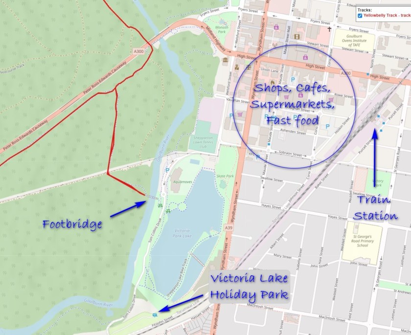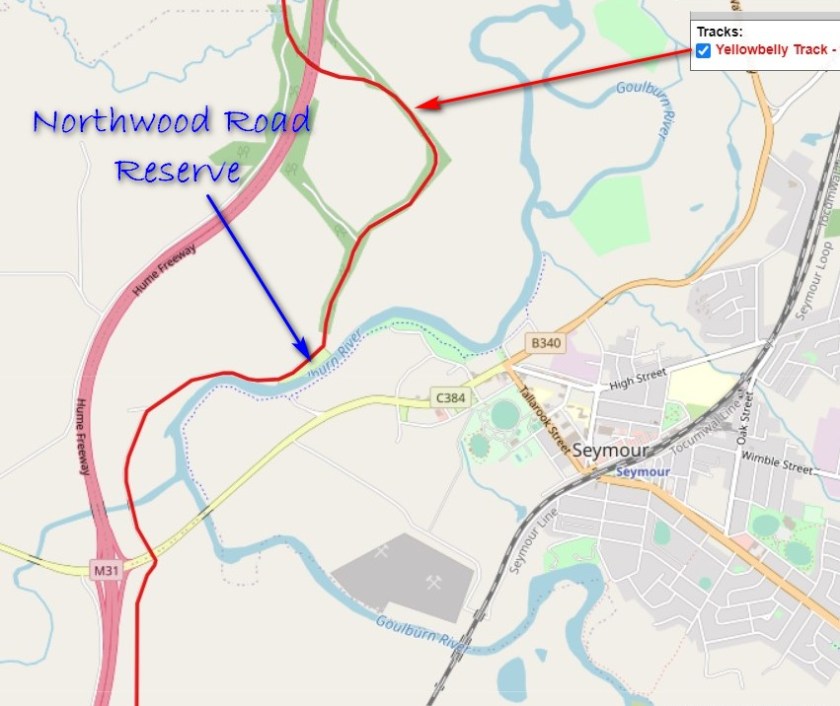 Seymour is a possible fall back option if you need one in this area. It has a full range of services. However, the only road access is via the town’s link road to the nearby Hume Freeway. So there is a lot of traffic. For this reason I have left Seymour off the Yellowbelly Track route.